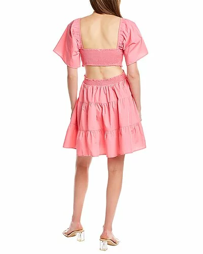 - Design details: flutter sleeves, cutout waist, smocked trim and tiered skirt