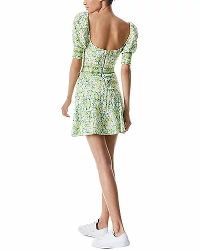 - Kristie Tiered Mini Dress in sun ditsy off white with bow and keyhole