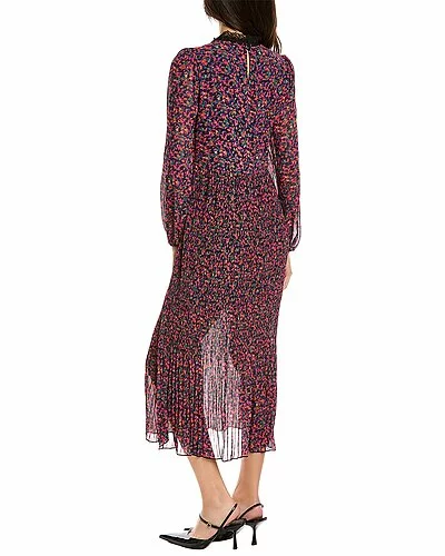 - Design details: lace mock neck, blouson sleeves, elasticized cuffs, and pleated skirt