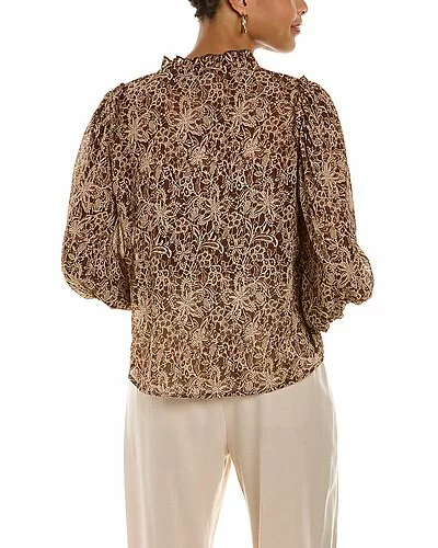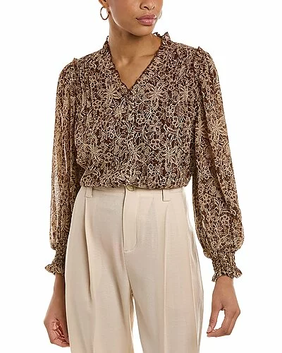 - Design details: pleated shoulders, rounded hem, smocked flounce cuffs