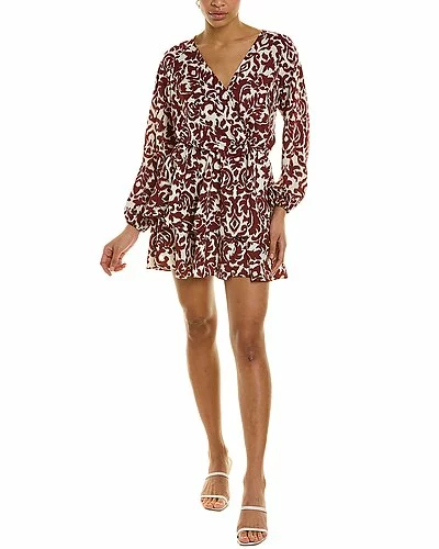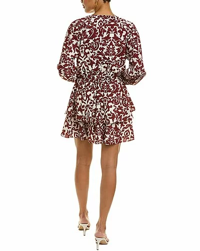 - Design details: layered skirt, V-neck, elasticized cuffs, and balloon sleeves