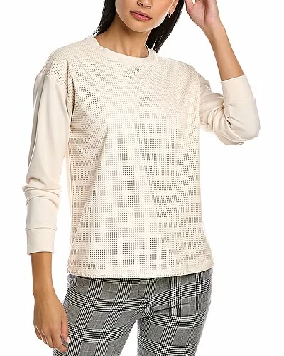 - Serenity Top in Anne white with perforated faux leather front and dropped-shoulder sleeves
