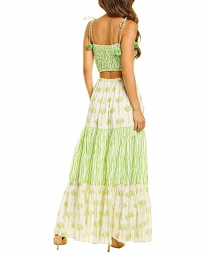 - Design details: dual side angled pockets, tiered hem, and elasticized waist