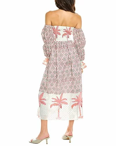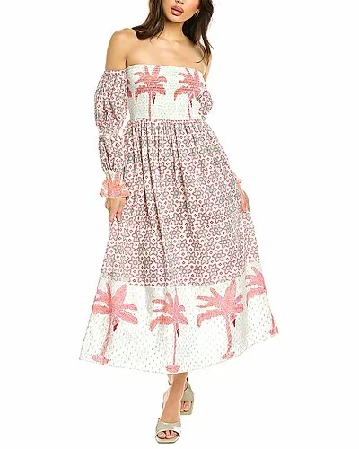 - Design details: off-the-shoulder sleeves, smocked detailing, and dual side slip pockets