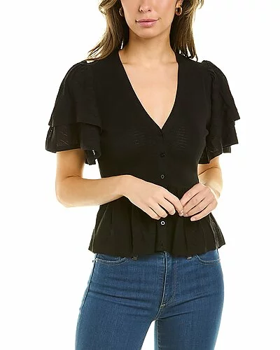 - Cropped Cardigan in black with flare sleeves and ruffle hem