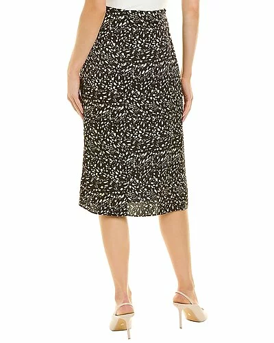 - Este Skirt in noir with ruched button-trim front and vented front hem