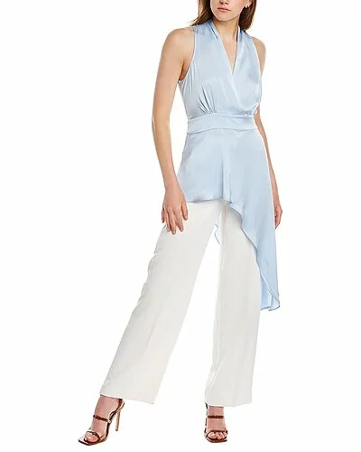- Asymmetrical Top in light crystal blue with hammered satin, surplice front, and shirred detailing
