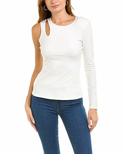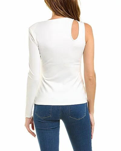 - Cutout Top in off white with one-shoulder style with right shoulder padding and cutout left shoulder