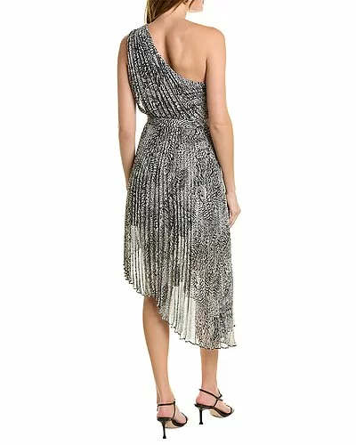 - Pleated Dress in black and white combo with one-shoulder design