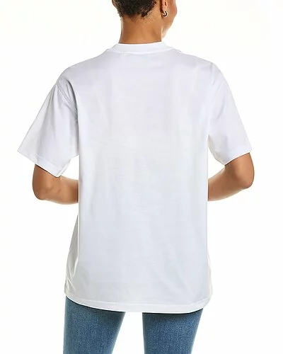 - Label Applique Oversized T-Shirt in white with crewneck and patch appliques