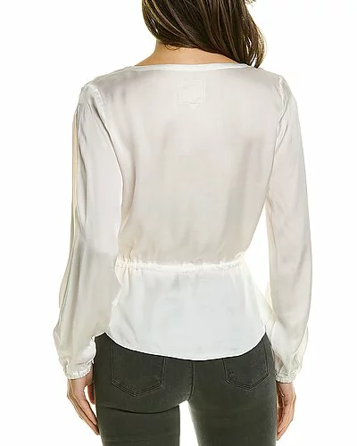 - Design details: V-neck, slit blouson sleeves, and drawstring waist