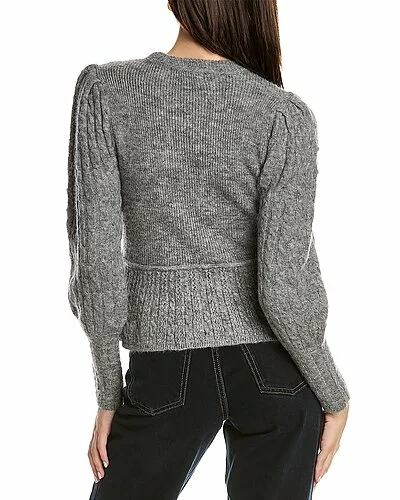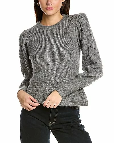 - Peplum Alpaca & Wool-Blend Pullover in grey with blouson sleeves