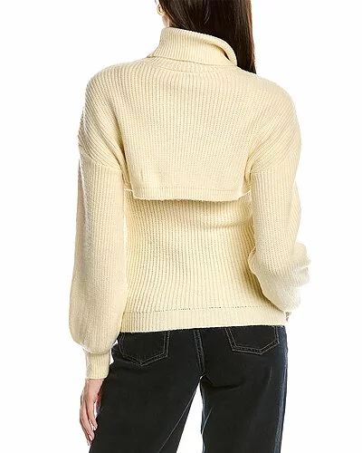 - Voluminous Sleeve Turtleneck in cotton cloud with attached two-piece crop look and dropped-shoulder sleeves