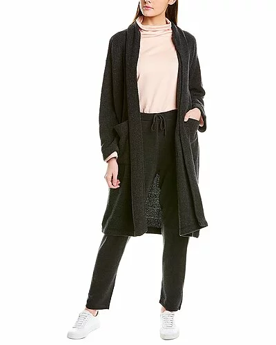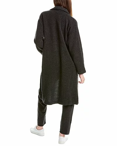 - Boucle High Collar Wool-Blend Coat in charcoal with dropped-shoulder sleeves and patch pockets