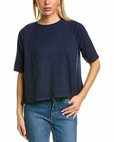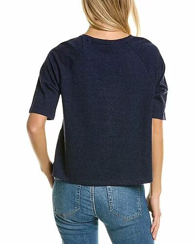 - Melange Crewneck Top in iris with raglan elbow-length sleeves