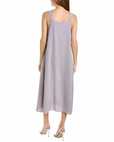 - Square Neck Silk Midi Dress in misty lilac with side seam pockets