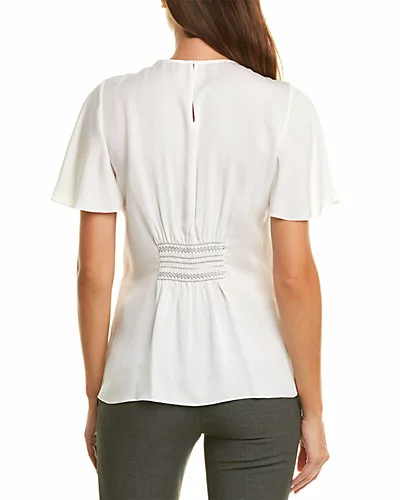 - Design details: shirred waist and flutter sleeves