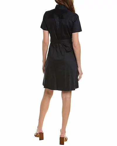 - Poplin Pocket Dress in stargazer with notch collar, dual chest pockets, dual front pockets, and self-tie sash at waist