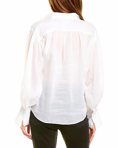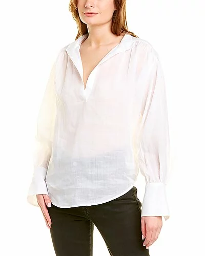 - Emma Top in blanc with split neckline, shirring details and blouson sleeves with button cuffs