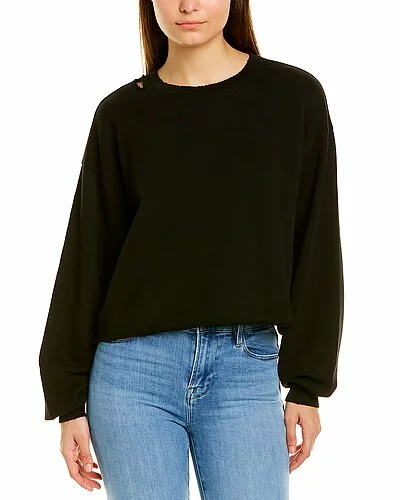 - Destructed Boxy Sweatshirt in noir with distressed design, dropped-shoulder sleeves, and cutoff hem