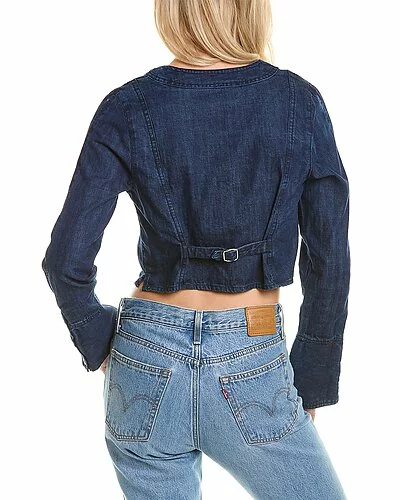 - Caroline Top in dark vintage with V-neck, split front, strap detail at back waist and button accents at cuffs