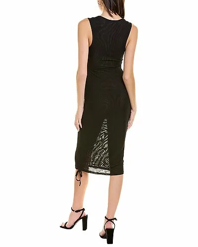 - Corsetis Slip Dress in black with mesh and lace design, square neck, and drawstring cinched left side