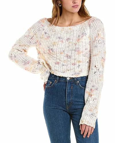 - Sunset Cloud Pullover in ivory combo with wide neck and cropped hem