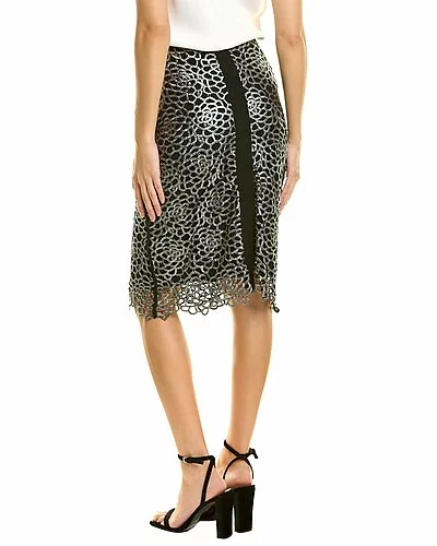 - Lace Pencil Skirt in black and silver combo with contrast overlay and vent at back