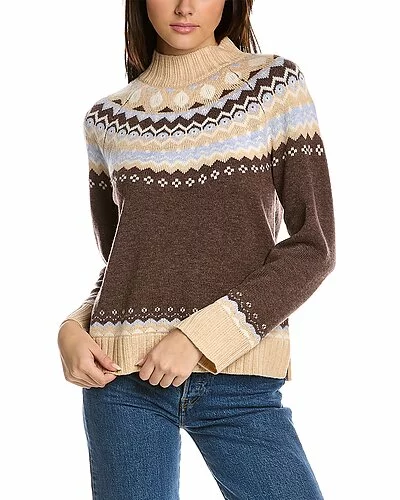 - Fairisle Raglan Turtleneck Wool & Cashmere-Blend Sweater in boar/cream with turtleneck, raglan sleeves, ribbed trim and side slits at hem