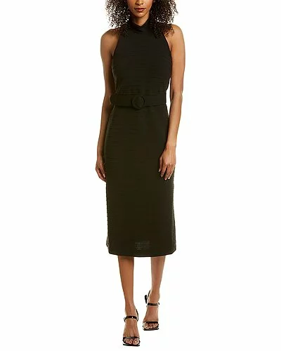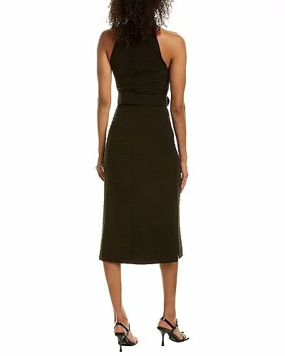 - Design details: ribbed design, halter neckline, belted waist and side slits at hem