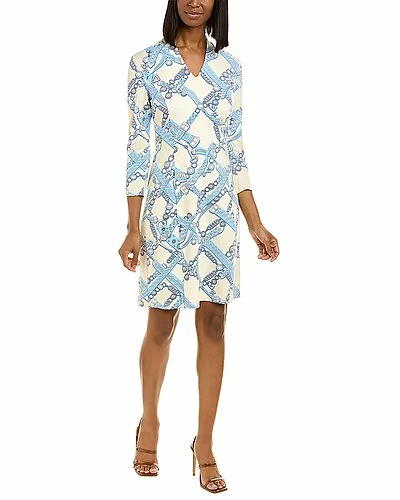 - Catalina Cloth Ivana Sheath Dress in beige & blue & gray neo paleo with V-neck and 3/4-length sleeves