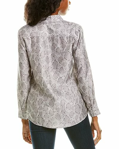 - Lois Silk-Blend Blouse in heather grey snakeskin print with barrel cuffs