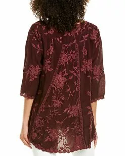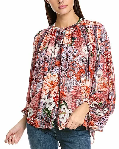 - Ingrid Shirt in multicolor with butterfly wing sleeves, button cuffs, and high-low hem