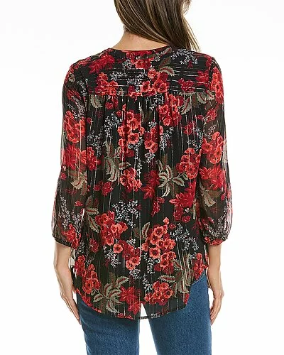 - Color/pattern: red, black, and green floral