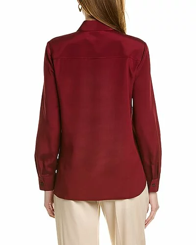 - Ruxton Silk-Blend Blouse in antique ruby with spread collar and pleated button cuffs