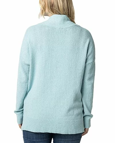 - Shawl Collar Tunic Sweater in frost with shawl collar, longer length, boucle