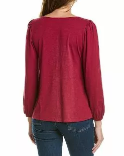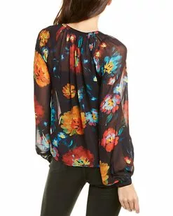 - Tie Front Puff Sleeve Silk-Blend Sweater in onyx with tie front neck, full sleeves, banded bottom, lightweight