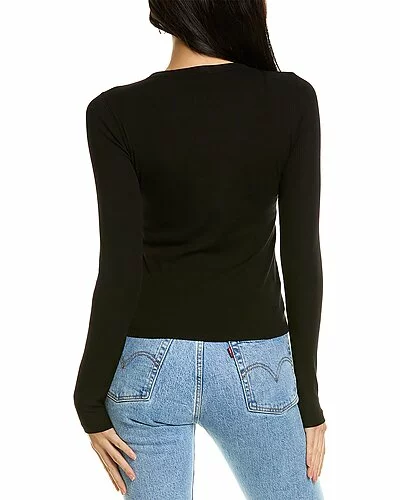 - Ribbed Cut Out Top in black with crewneck and double V cutout detailing