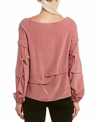 - Design details: boatneck, notched collar, pleated trim, elasticized cuffs