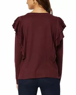 - Mjer Split Sleeve Top in white with gathered details and curved hem