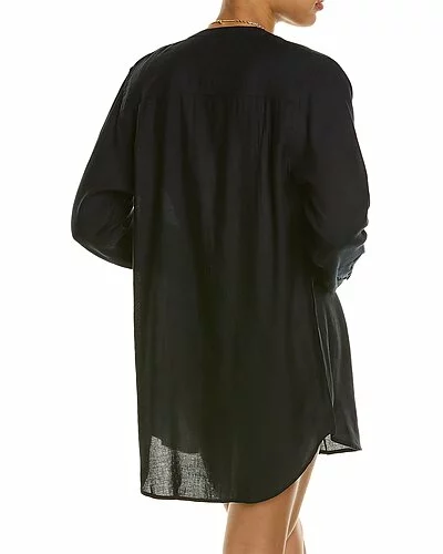 - Air Button-Down Linen-Blend Tunic in black with button cuffs and shirttail hem