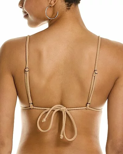- Alexa Bikini Top in tan with waffle fabric, triangle style, adjustable shoulder straps and black hardware