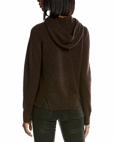 - Pierce Cashmere Hoodie in dark brown with shaker rib paneling
