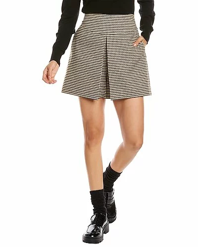 - Check Linen-Blend Skort in spring check espresso with inverted front pleat and four-pocket styling