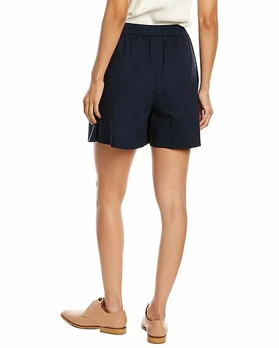 - Poplin Skort in marine blue with elasticized back waist and adjustable waist tie