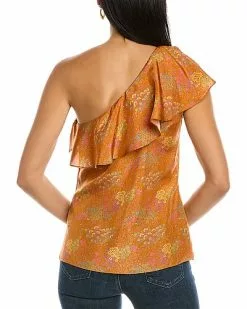 - Sage Fleur Silk Top in sage combo with delicately gathered shoulders, ruched details on the sleeves, and light smocking at the neckline