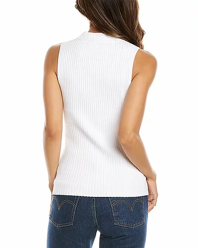 - Sweater Tank in optic white with ribbed design, mock neck, and cutout detail