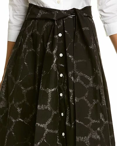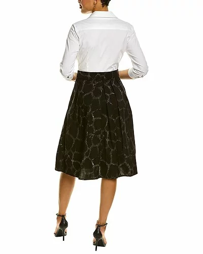 - Audrey 1 Shirtdress in animal black with 3/4-length sleeves, pleated skirt, side seam pockets, belted waist, and tie-sash