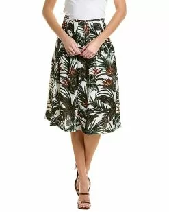- Zelda Linen Skirt in white flower with pleated design and side seam pockets