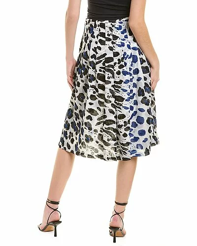 - Zelda Midi Skirt in wild cat white indigo with pleated design and two front pockets